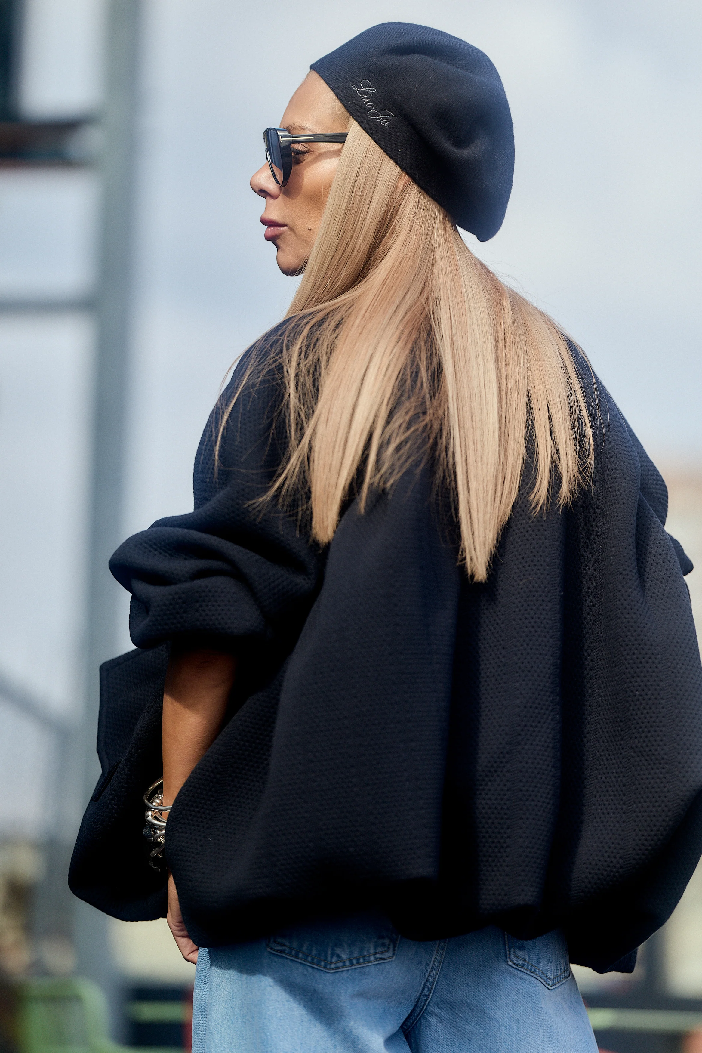 The relaxed fit and dropped shoulders create an effortlessly cool shape, while the deep black tone keeps it timeless and versatile. Perfect for layering over denim, leather, or minimalist separates â this jacket brings volume, confidence, and individuality to every look.