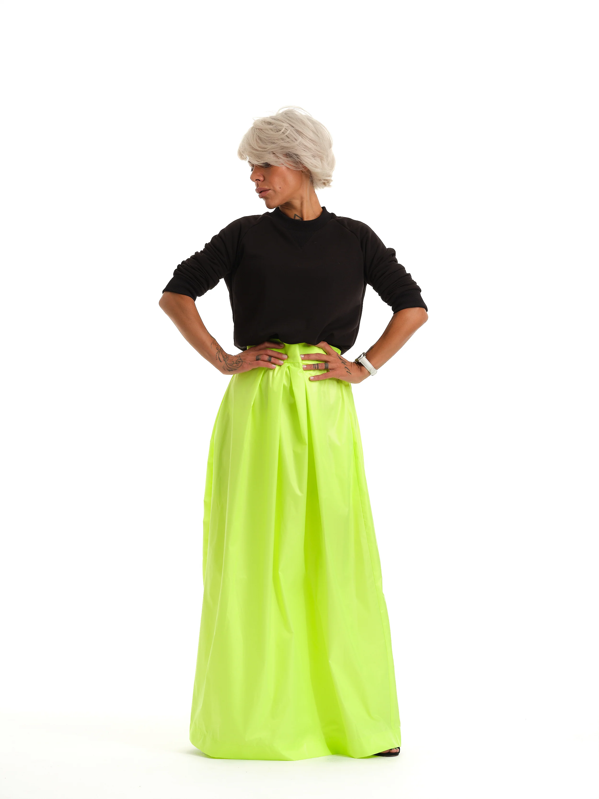-70%High-Waisted Neon Green Maxi Skirt with Elastic Waistband—